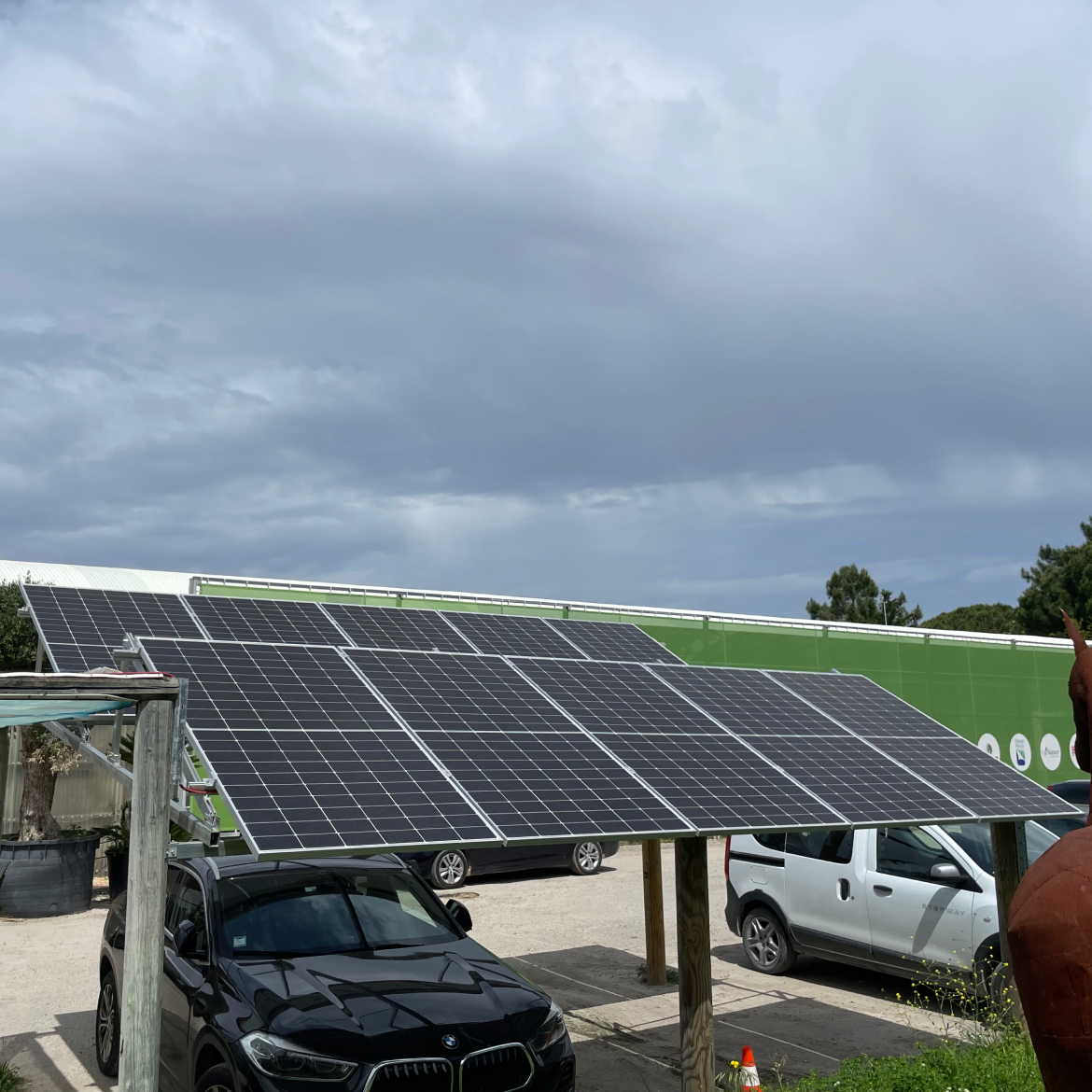 Sim. Instalamos carregadores de veículos elétricos integrados no sistema solar, permitindo-lhe